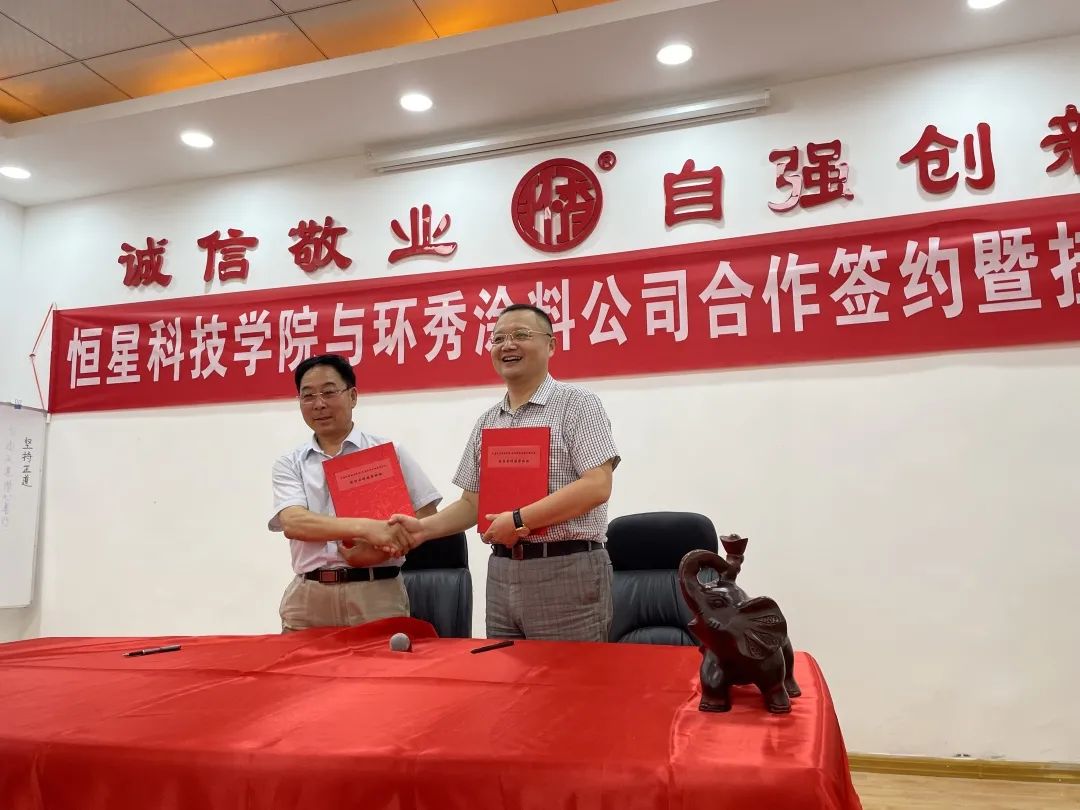 签约仪式上,刘金德董事长对学院一行人的到来表示热烈欢迎并致欢迎词,刘董事长谈到青岛环秀涂料有限公司与恒星科技学院学研合作,优势互补,珠联璧合,开启共创共建产教融合里程碑。青岛恒星集团陈李总裁表示青岛环秀涂料有限公司产业标准化、技术化、规范化,学校与公司协作,可共同创建国内应用型大学的标杆。市场监督管理局王心长科长也表示青岛恒星科技学院与青岛环秀涂料有限公司校企合作,强强联手,共同推进了产教融合的发展。