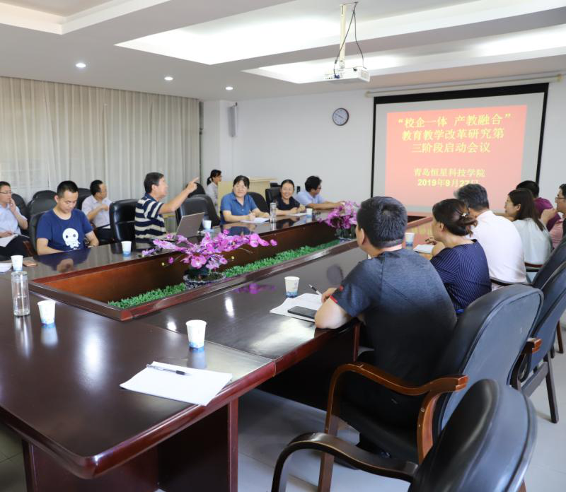 为了进一步深化产教融合,2019年9月27日,青岛恒星科技学院在图书馆第一会议室召开了“校企一体,产教融合”教育教学改革研究第三阶段启动会议。参加会议的领导有青岛恒星科技学院校长董事长陈昌金、特聘教授单凤儒、教学科研校长徐爱民,另外还有高等教育研究院、产教融合研究院、教务处、科技处、思政部、运营处、宣传处等部门参加,会议就申报国家级教育教学成果进行了热烈的讨论。