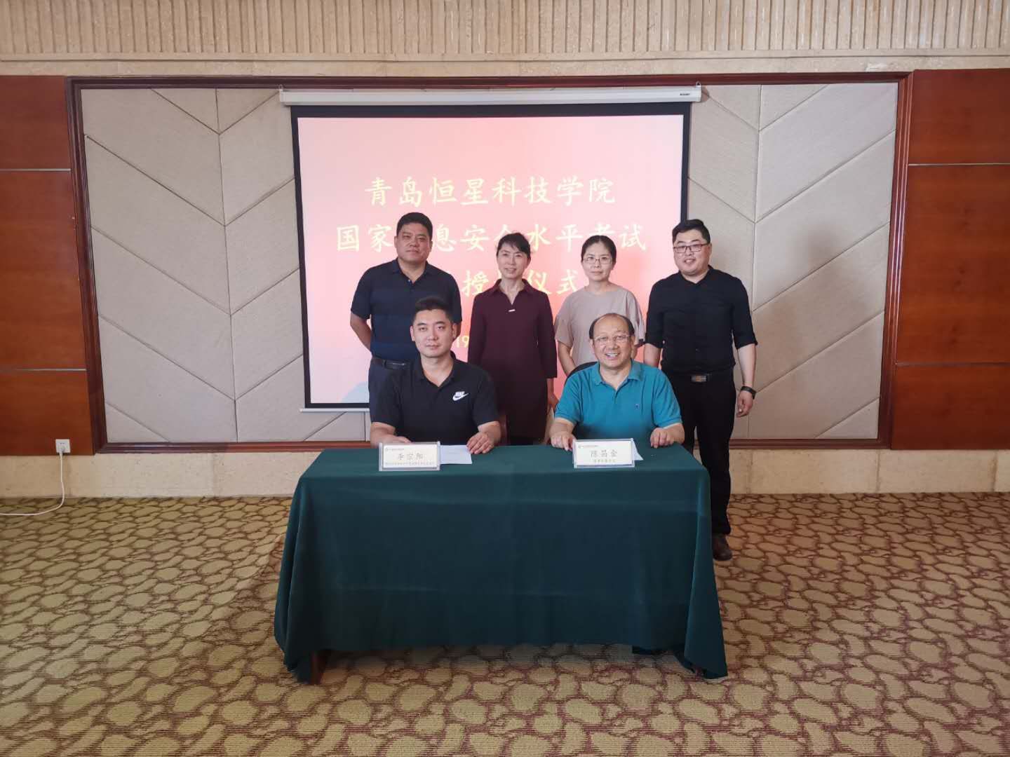 最后,青岛恒星科技学院董事长陈昌金和山东省国家信息安全水平考试运营中心李宗阳代表双方签订合作协议。刘民杰、李宗阳分别为学院颁发了国家信息安全水平考试“青岛市管理中心”牌照和“授权认证中心”牌照。