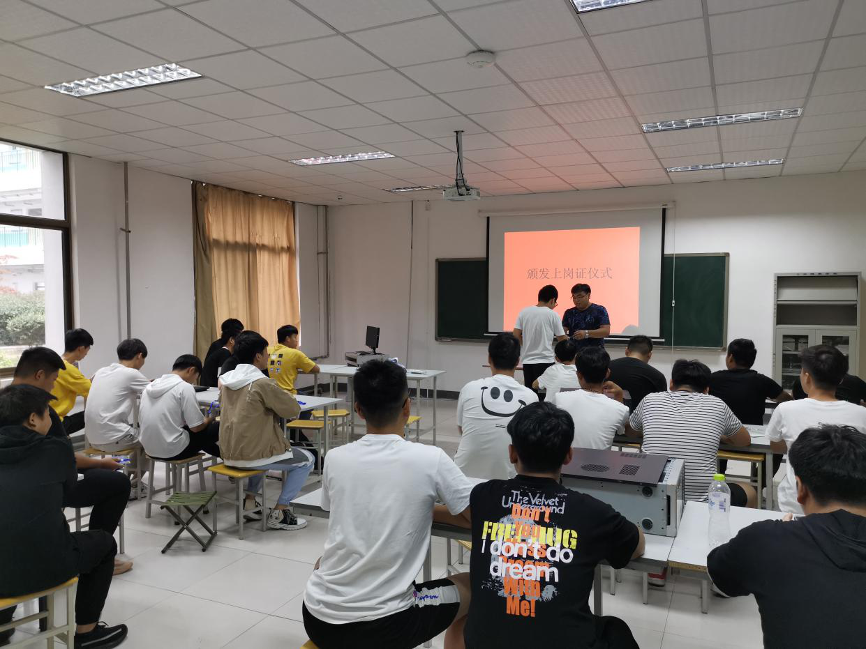 2019年9月9日,岗位动员及培训在实验楼110教室举行。47名学生整齐端坐耐心倾听教师们的发言。教务处副处长苏文科处长代表实践教学中心对学生做了要求,希望所有同学通过此次实岗实践可以真正掌握一技之长,能真正独立完成相关设备的故障维修等工作,在学习和工作中有收获、有成就感。实训指导教师宋言东老师指出,所有同学都要遵守实岗实践纪律,在岗训中注意操作安全,理论结合实际,做好实岗实践工作。
