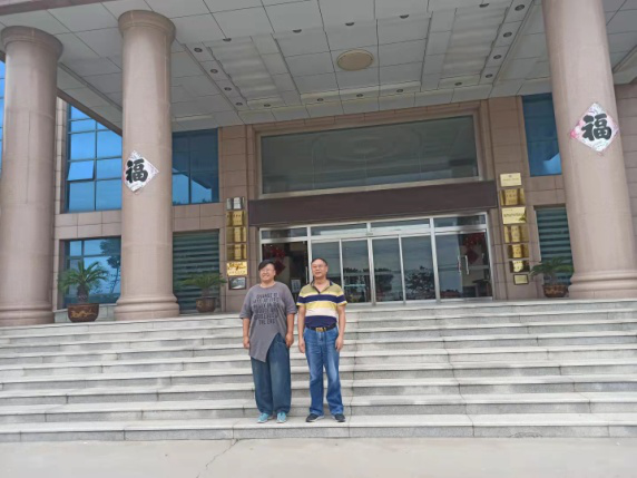 王凯荣教授与邓秀峰董事长在公司办公楼前合影