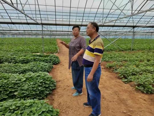 邓秀峰董事长向王凯荣教授介绍甘薯脱毒苗生产