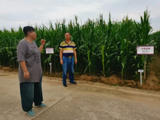 邓秀峰董事长陪同王凯荣教授参观玉米新品种田间展示