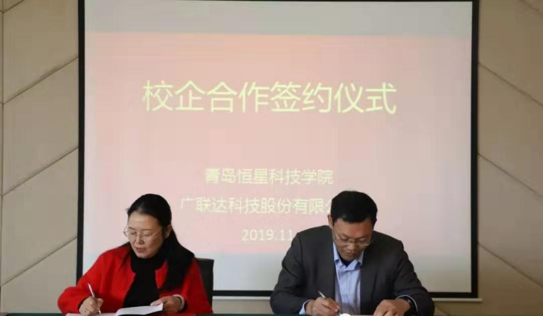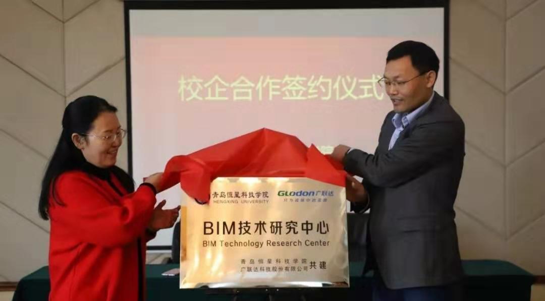 2019年11月13日上午,青岛恒星科技学院与广联达科技股份有限公司校企合作签约暨BIM技术研究中心揭牌仪式在图书馆7楼贵宾室举行。参加此次仪式的有:广联达科技股份有限公司助理总裁杨相传先生、山东区域人力总监李明花女士、山东高校区域经理亓会斌先生,青岛恒星科技学院副校长徐爱民女士、建筑学院院长刘健、教学院长姜兆飞、建筑工程技术学科带头人谢卫红博士、行业院长王萍、教学助理焦欣欣。