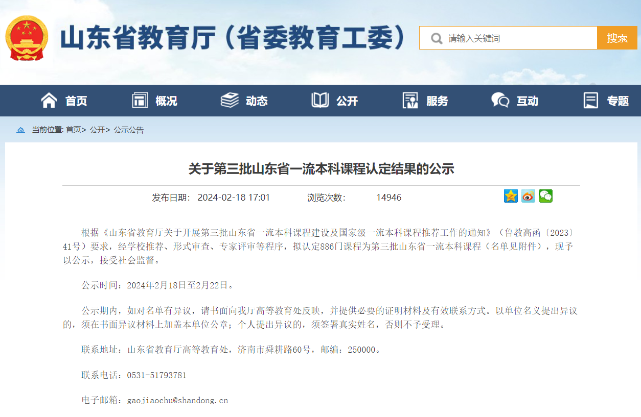 近日,山东省教育厅发布了《关于第三批山东省一流本科课程认定结果的公示》,拟认定886门课程为第三批山东省一流本科课程。我校共6门课程入选,其中《互换性与技术测量》等5门课程认定为线上线下混合式一流课程,《影视剪辑技术》认定为线上一流课程。