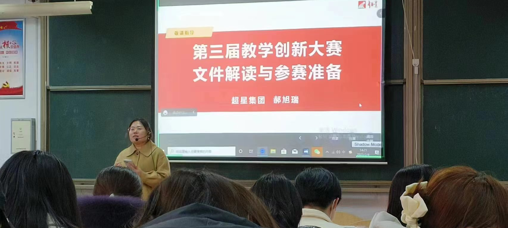 教师教学创新大赛是助力推动高等教育“质量革命”的重要举措,旨在落实好立德树人根本任务。为深抓课程质量,夯实教学“新基建”,打造人才培养新质量,全面提升教师教学能力,帮助广大教师理解和聚焦教学创新,教务处于2月8日组织召开了教师教学创新大赛培训会。本次会议邀请超星集团郝旭瑞老师作培训指导,采用线上线下相结合的方式进行,共有300余名教师参加。