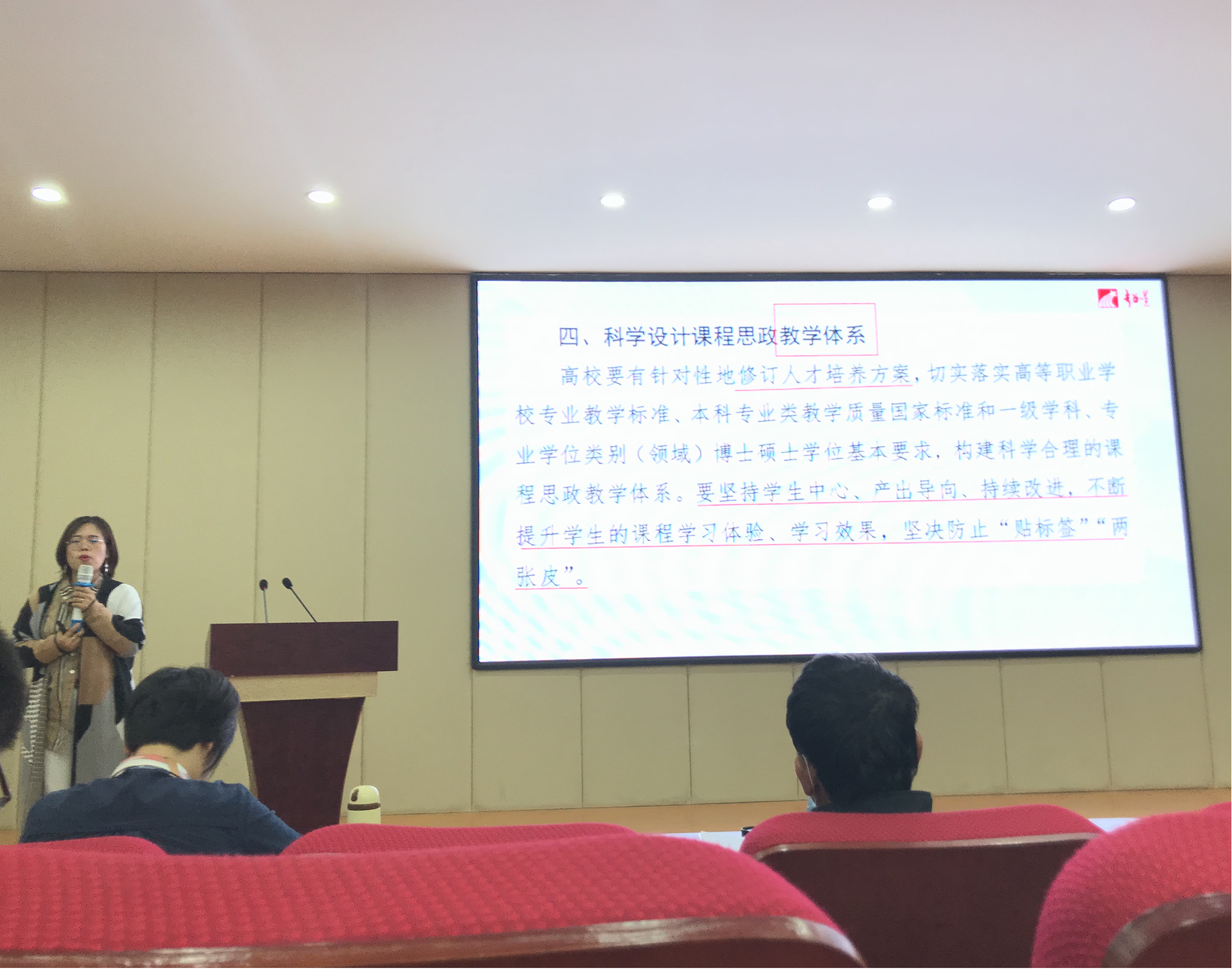 图二 主讲人赵玉霞老师正在给老师们讲解课程思政教学体系设计